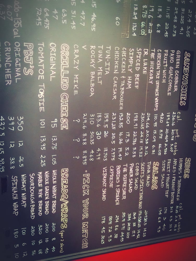 White albacore tuna mix, mixed greens, black olives, pickles, and tomatoes, on your choice of bread or wrap. Served with fresh fruit. Available in light (single meat) or heavy weigh (double meat).